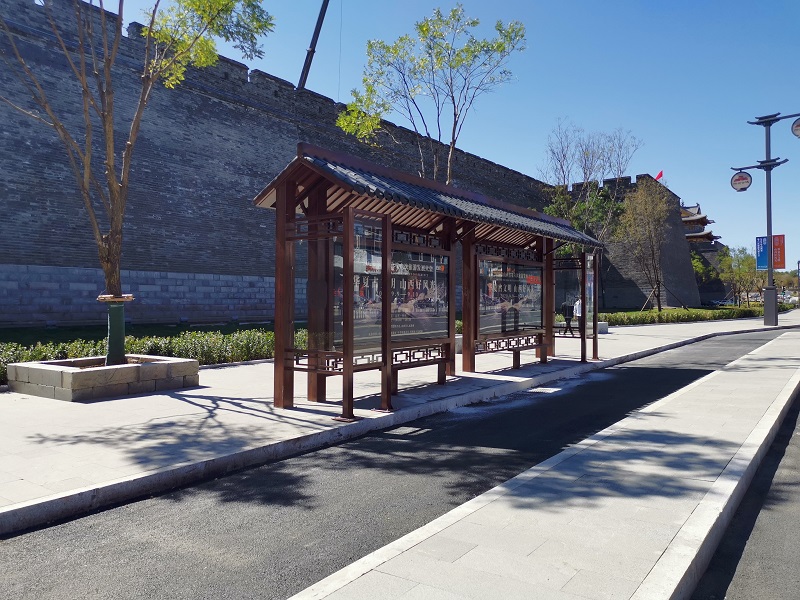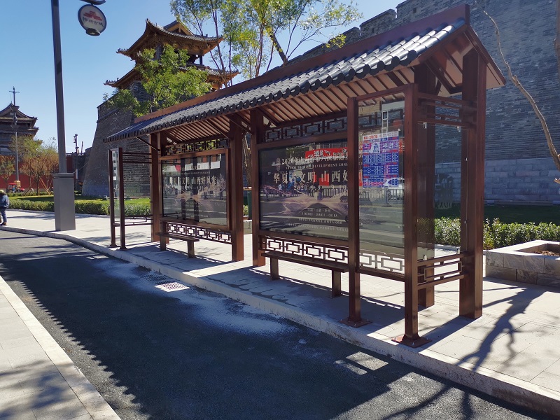 在旅游節上,忻州市在美城街具工貿定制了以古城文化為主題的候車亭,目前忻州是山西省內唯一一個同時擁有長城、黃河、太行三大旅游元素的城市,此次的旅發大會logo及海報也是將長城、黃河與山脈以抽象的方法以圖章方式呈現,我司在接到忻州的訂單任務后,安排設計及相關工作人員結前往實地考察,切身感受地方的城市文化,結合忻州城市建筑風格,以旅發大會為主題,融合了現代與歷史元素,做出了這款樸實穩重風格的候車亭,為了讓旅游節順利召開,不給交通出行上拖后腿,我司加急生產,保質保量完成產品加工后,以忻州古城為基點,派出安裝人員加班加點快速安裝,終于在旅游節開始前夕,候車亭全部安裝完畢并調試到位,所有站點站臺全線投入使用.